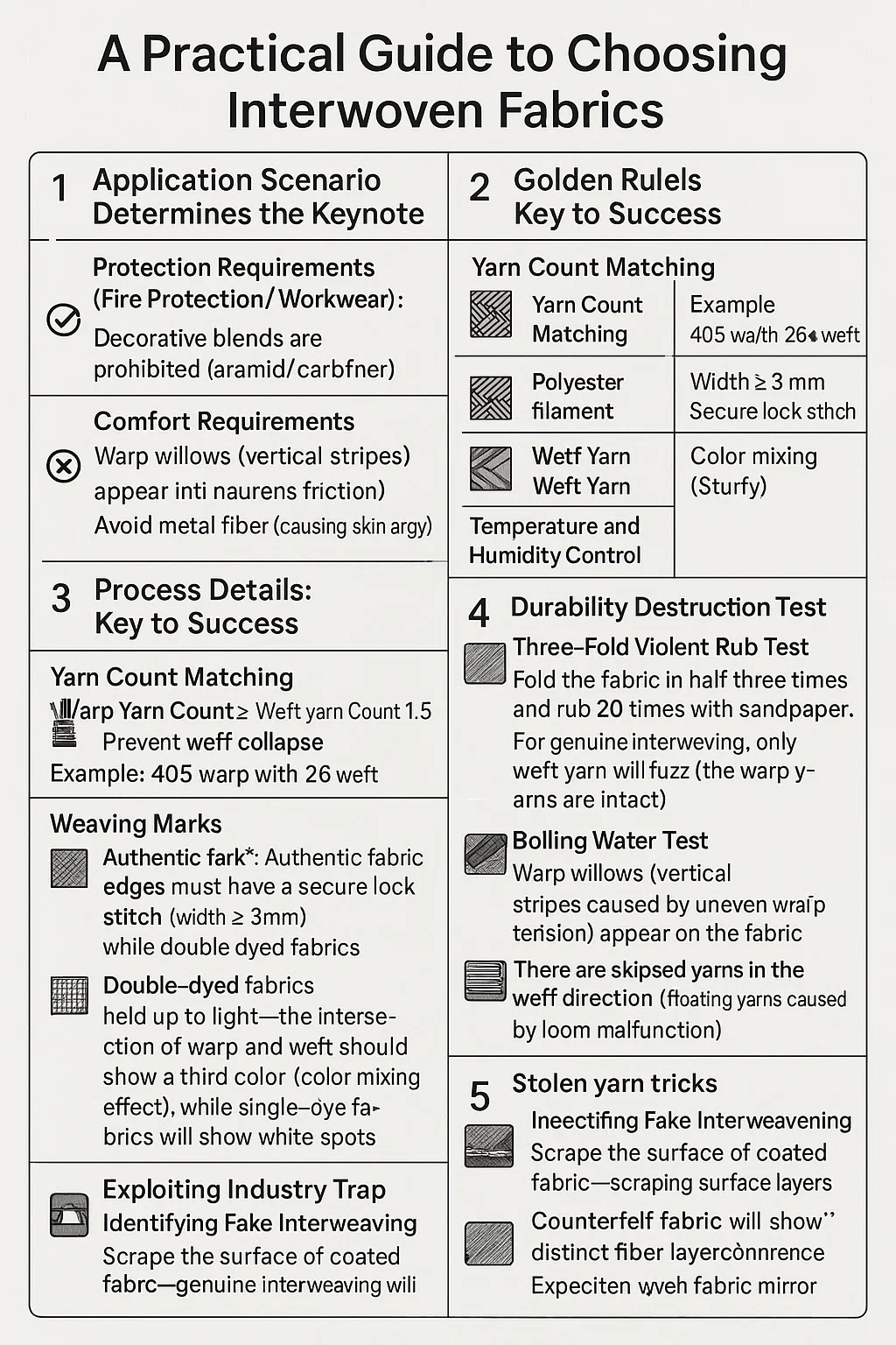 Overeenkomende garentelling: Aantal scheringgaren ≥ Inslaggarenaantal × 1,5 (voorkomt inslag van de inslag). Voorbeeld: 40S schering met 26S inslag
