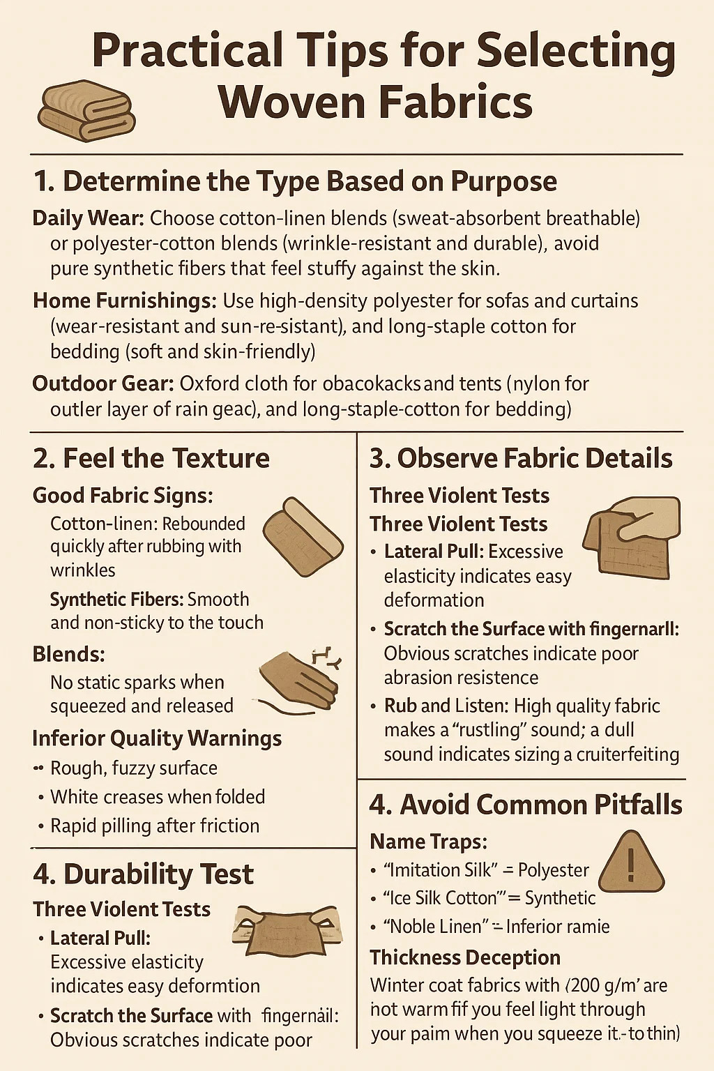 Dagelijks gebruik: Kies katoen-linnenmengsels (zweetabsorberend en ademend) of polyester-katoenmengsels (kreukbestendig en duurzaam), waarbij pure synthetische vezels worden vermeden die benauwd aanvoelen op de huid.