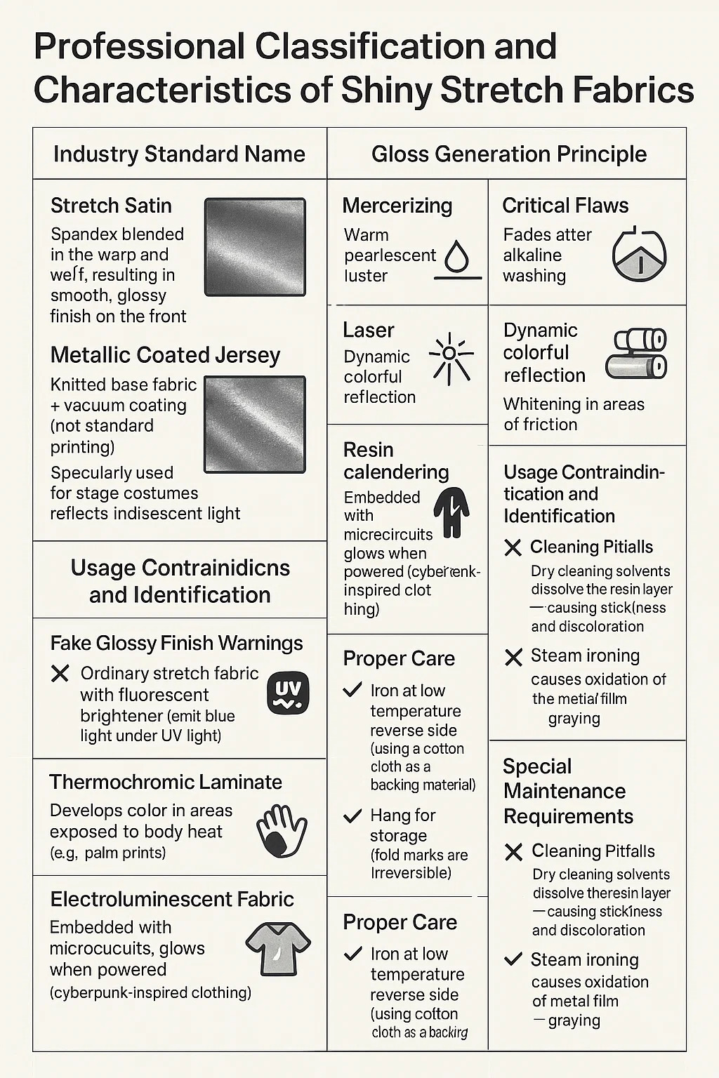 Professionele classificatie en kenmerken van Shiny Stretchstoffen